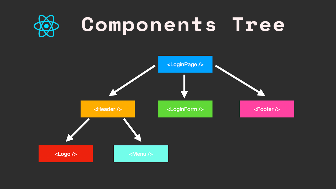 A React application is made from many components, where each UI component can place another component, forming a tree of components.